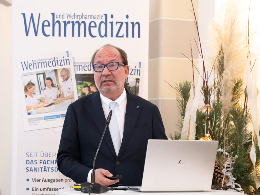 Anschließend referierte der Leitende Zahnarzt der Bundeswehr Oberstarzt Dr. Jürgen Rentschler über die im Jahr 2025 geleistete Arbeit des Fachbereichs und hob den hohen Stellwert der präventiven Zahnmedizin mit Verweis auf die Deutsche Mundgesundheitsstudie 6 (DMS 6) sowie deren nachweislich erzielten Erfolge der vergangenen Jahrzehnte hervor.