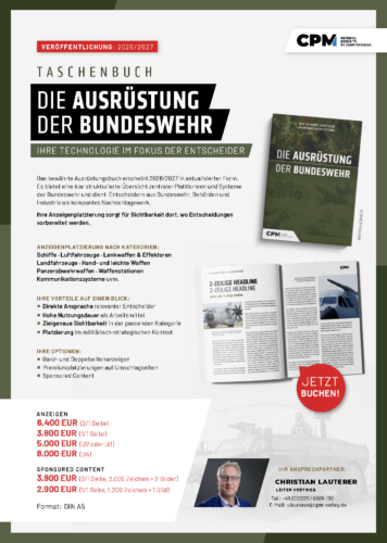 Das bewährte Ausrüstungsbuch erscheint 2026/2027 in aktualisierter Form. Es bietet eine klar strukturierte Übersicht zentraler Plattformen und Systeme der Bundeswehr und dient Entscheidern aus Bundeswehr, Behörden und Industrie als kompaktes Nachschlagewerk.